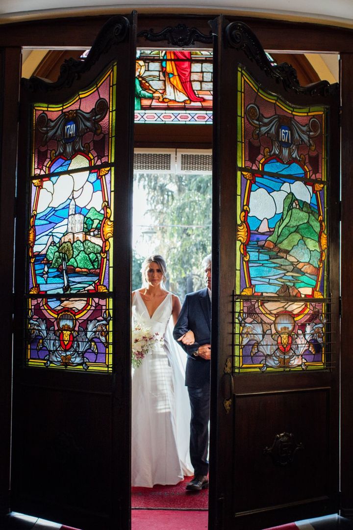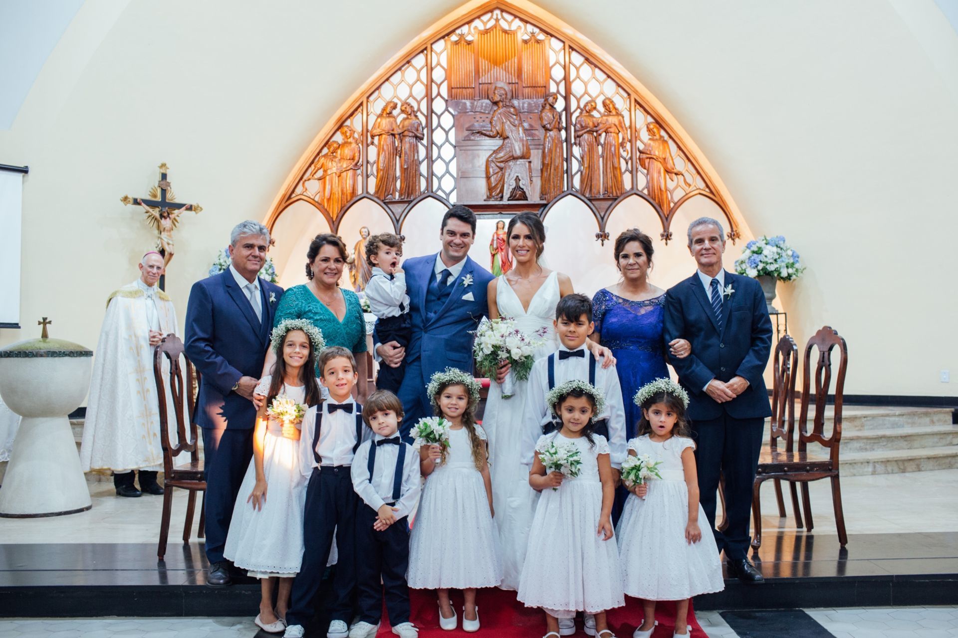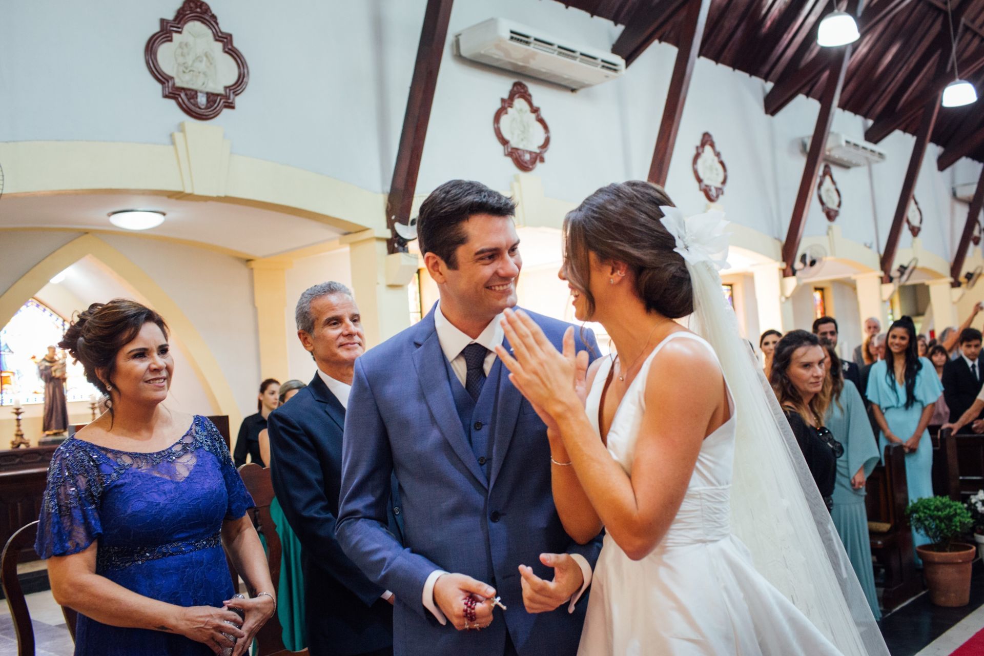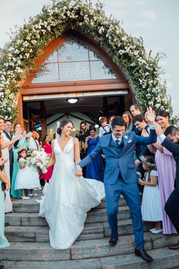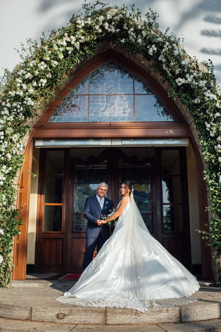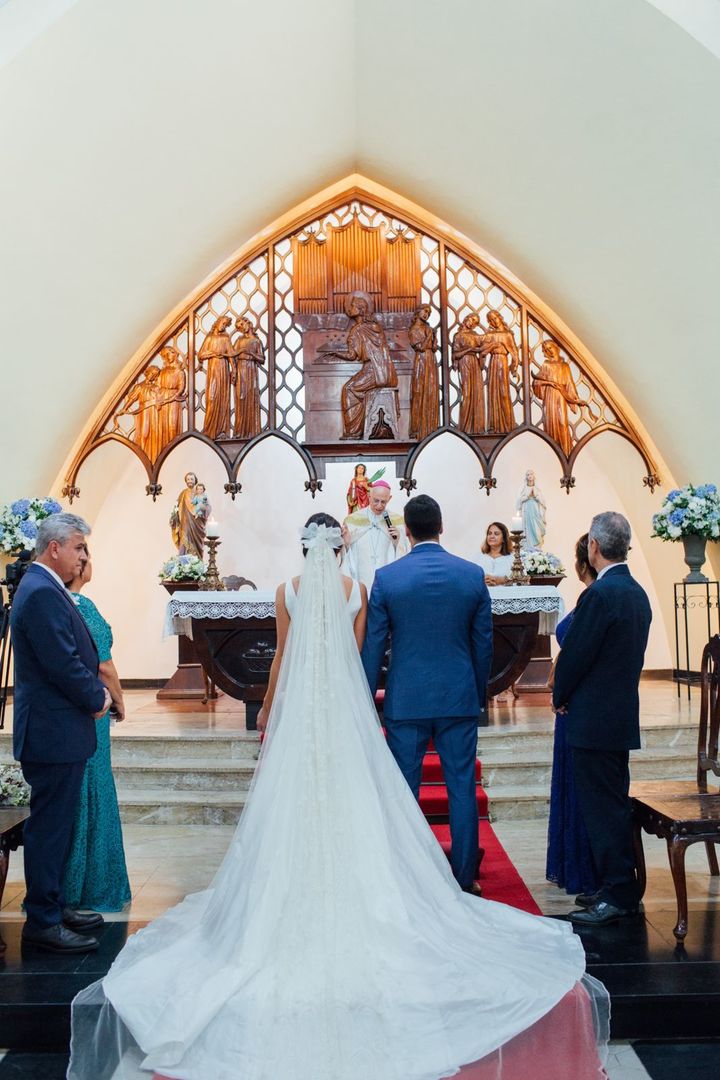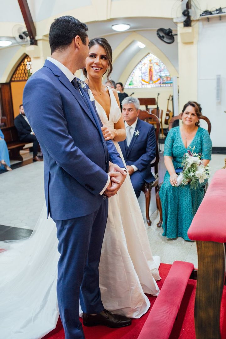 Ela escolheu casar na Igreja que a Mae e a avo dela se casaram, usou uma mantilha da família dele de muitos anos, teve a celebração feita por um bispo e a festa foi super especial com uma decoração inacreditável de linda e uma pista animada desde o inicio ate o fim!