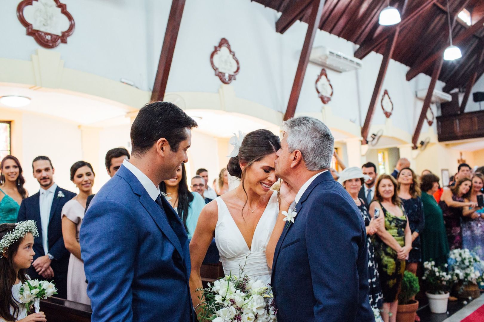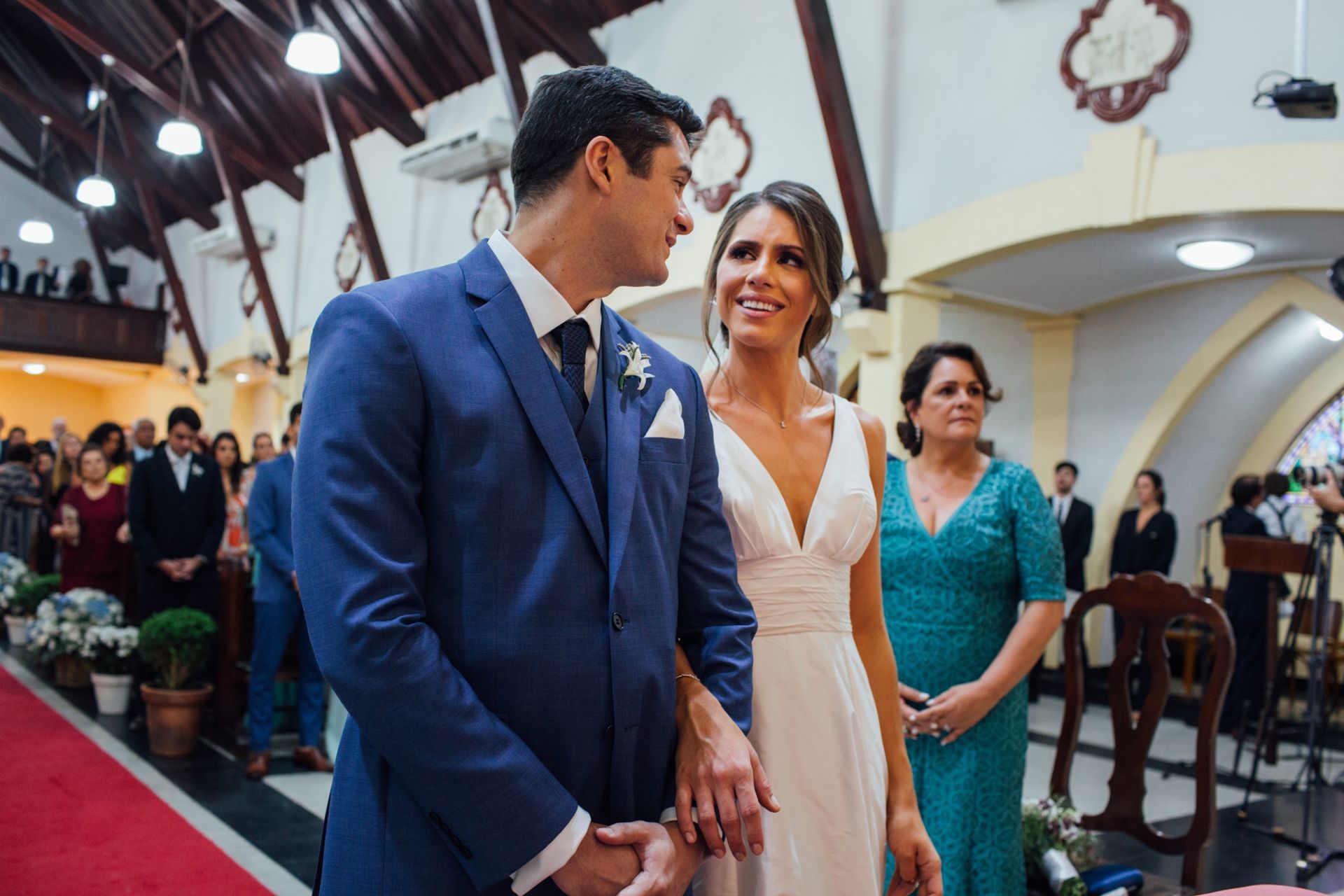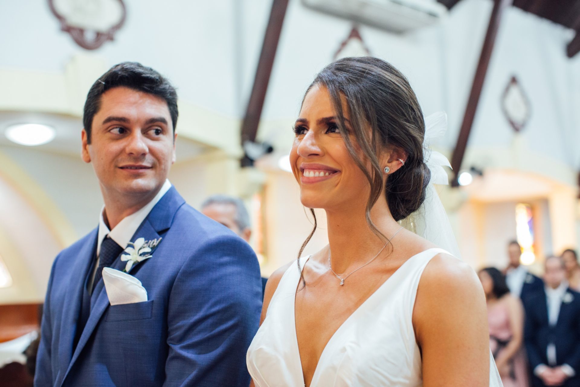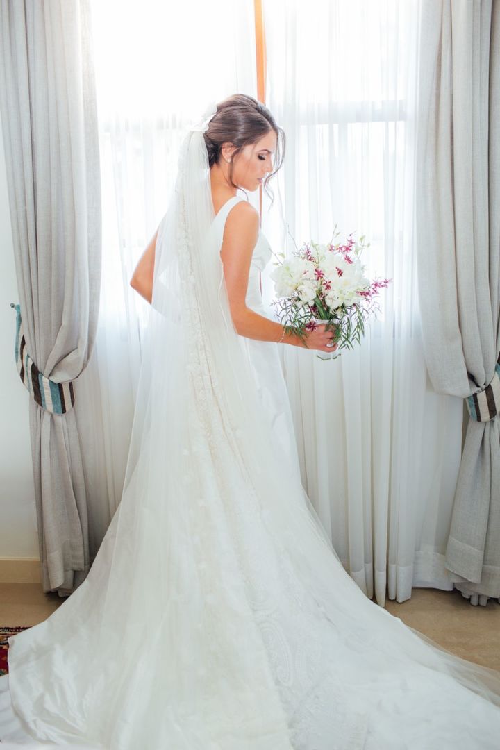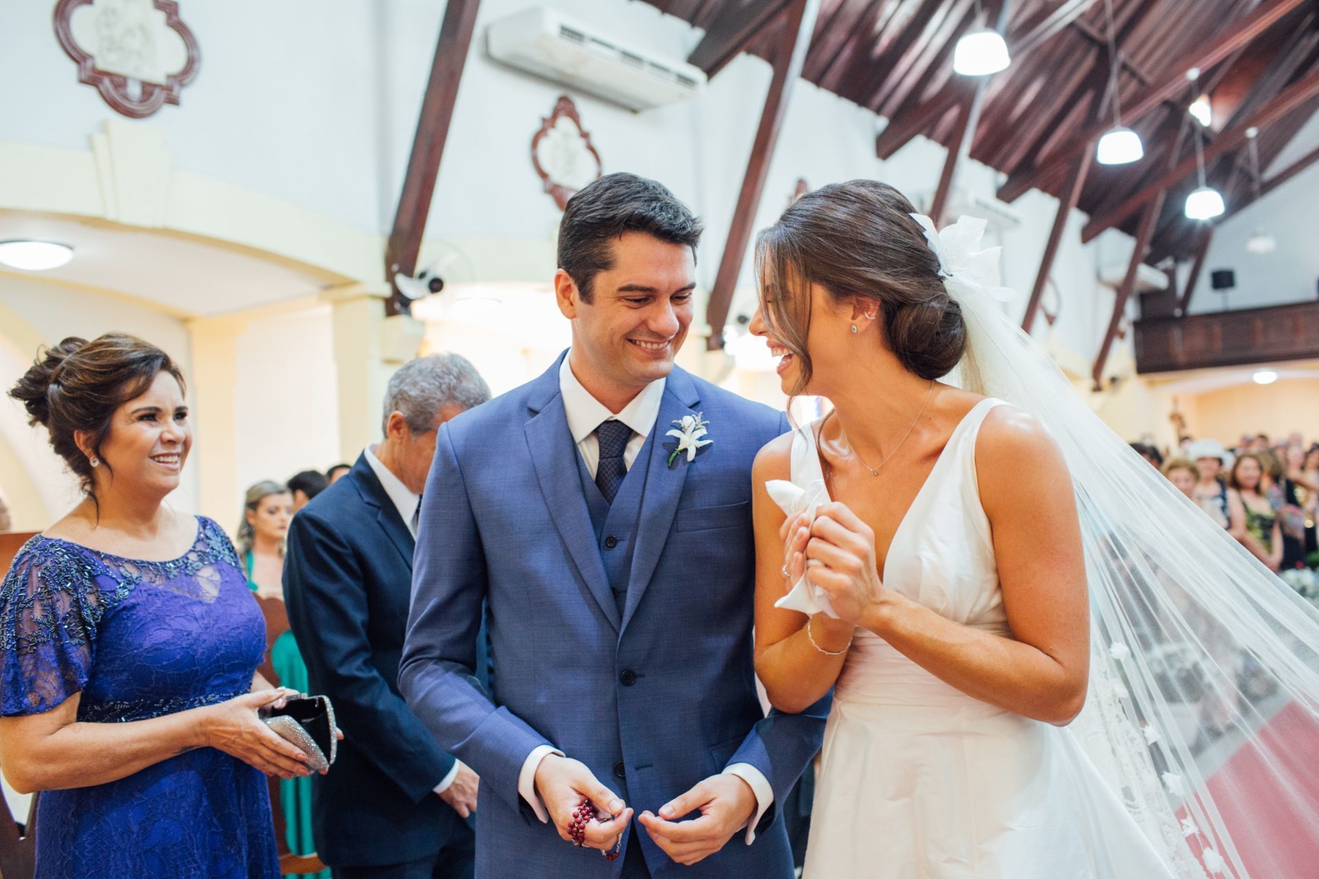 Ela escolheu casar na Igreja que a Mae e a avo dela se casaram, usou uma mantilha da família dele de muitos anos, teve a celebração feita por um bispo e a festa foi super especial com uma decoração inacreditável de linda e uma pista animada desde o inicio ate o fim!