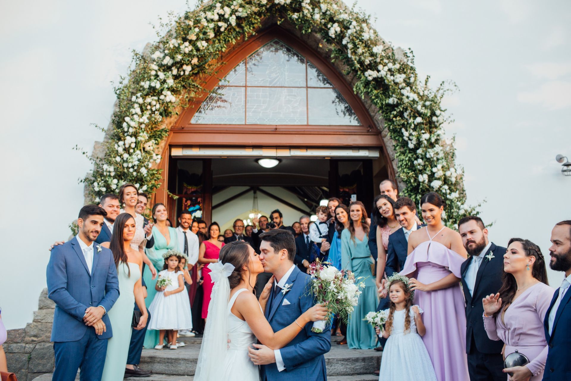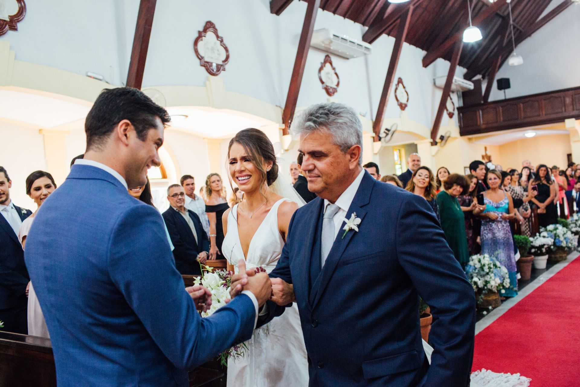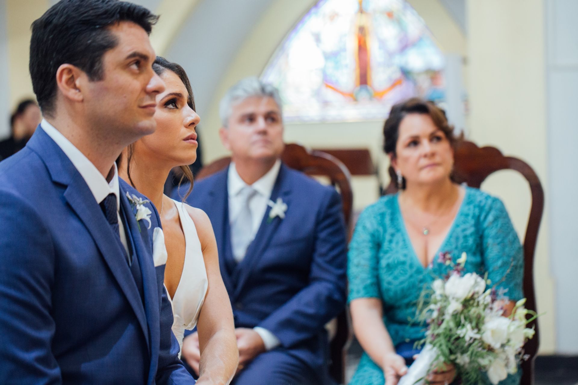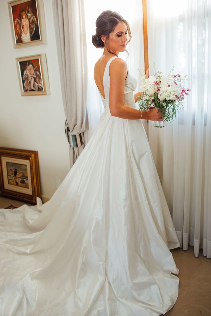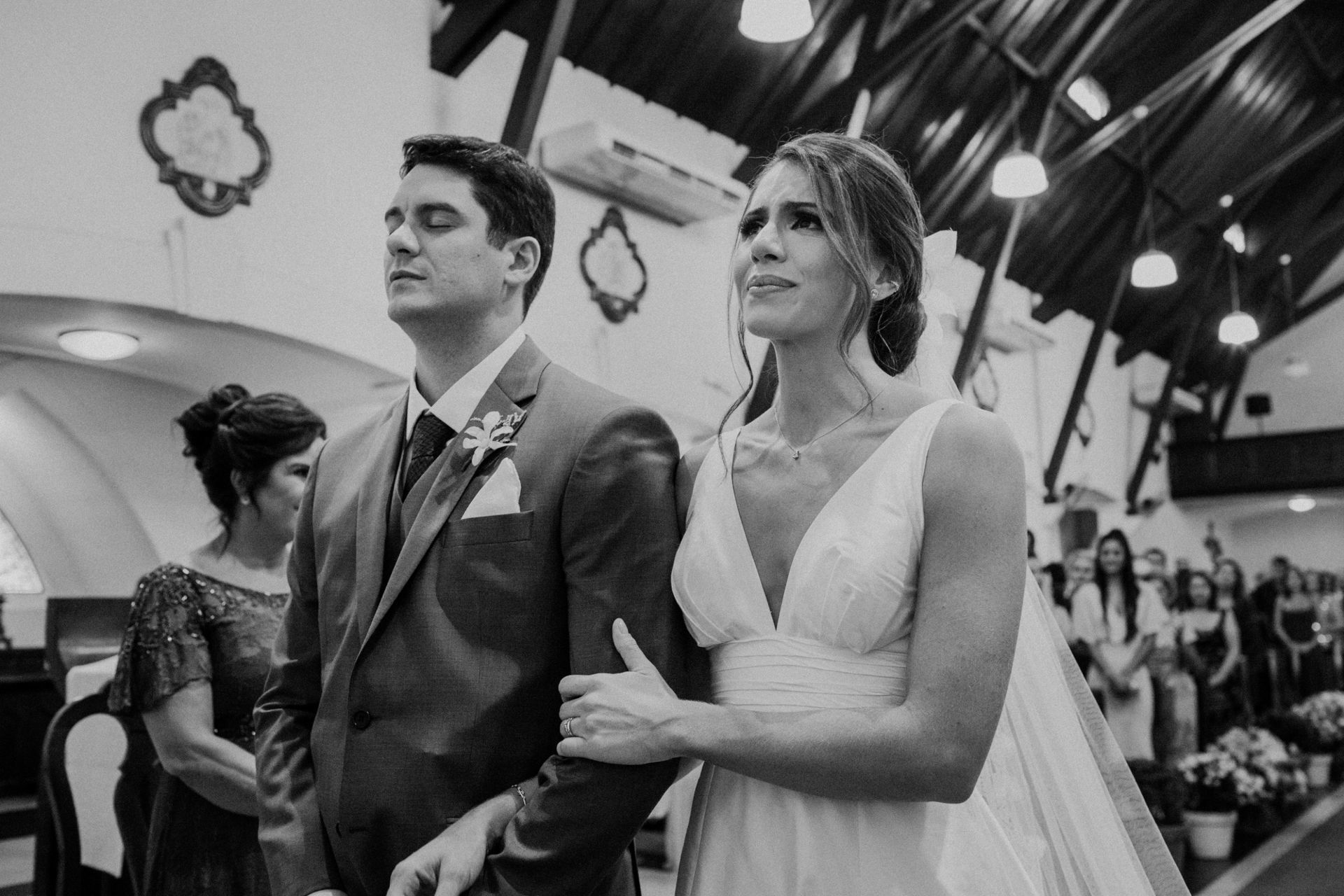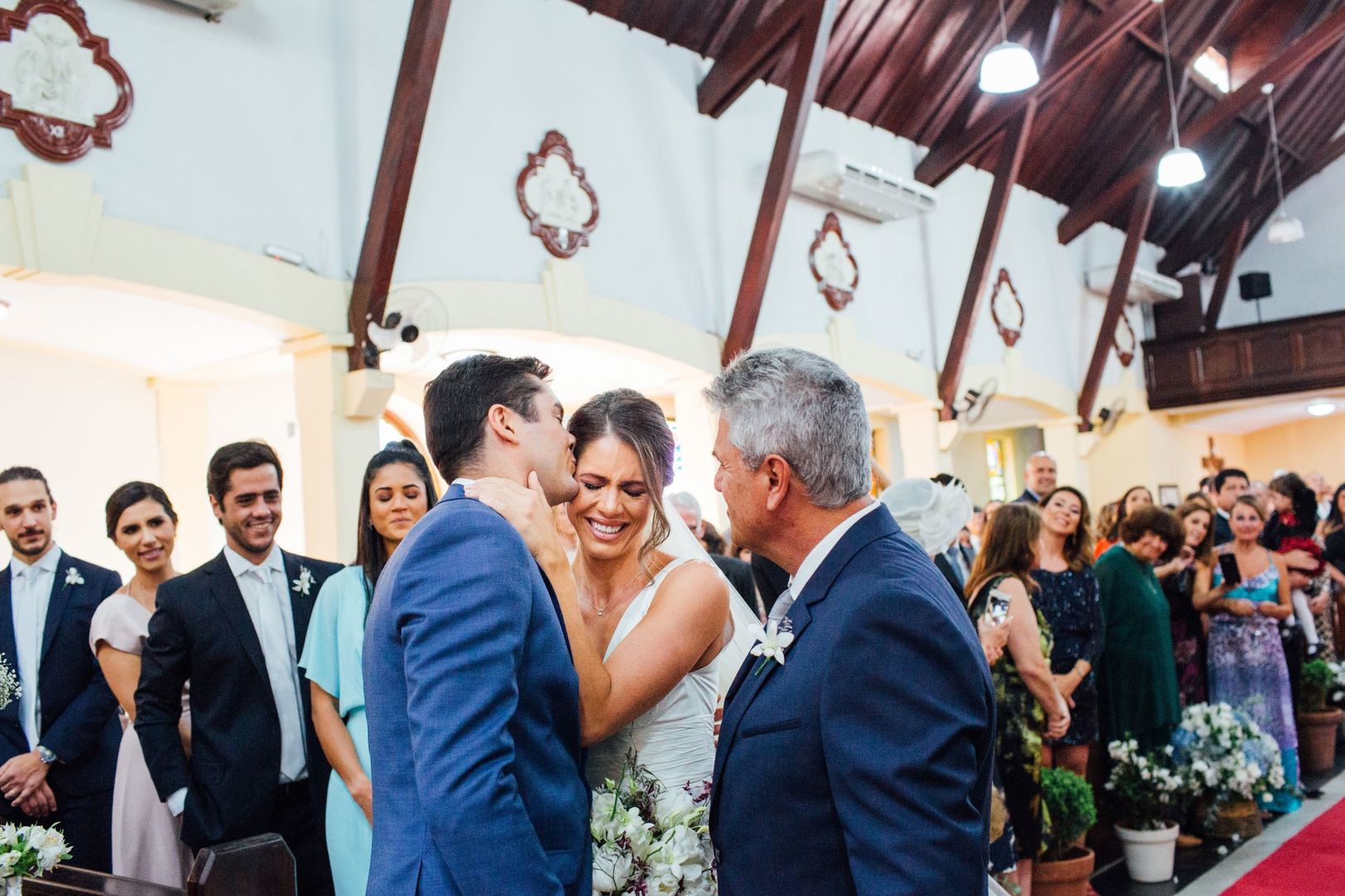 Ela escolheu casar na Igreja que a Mae e a avo dela se casaram, usou uma mantilha da família dele de muitos anos, teve a celebração feita por um bispo e a festa foi super especial com uma decoração inacreditável de linda e uma pista animada desde o inicio ate o fim!