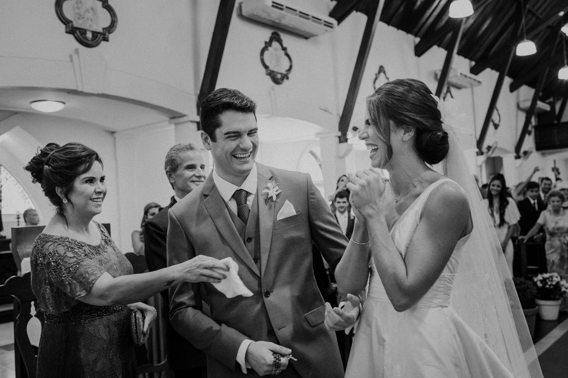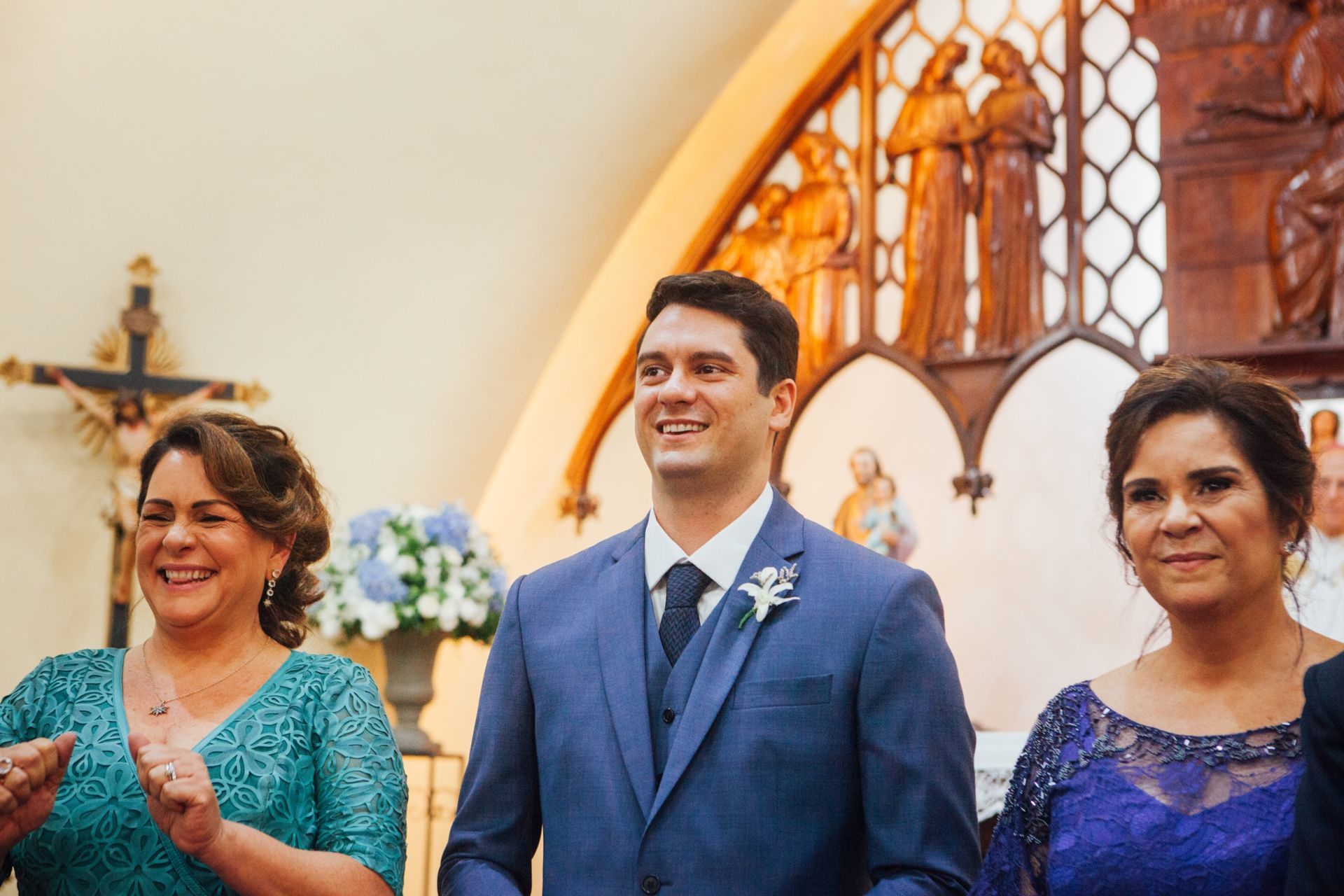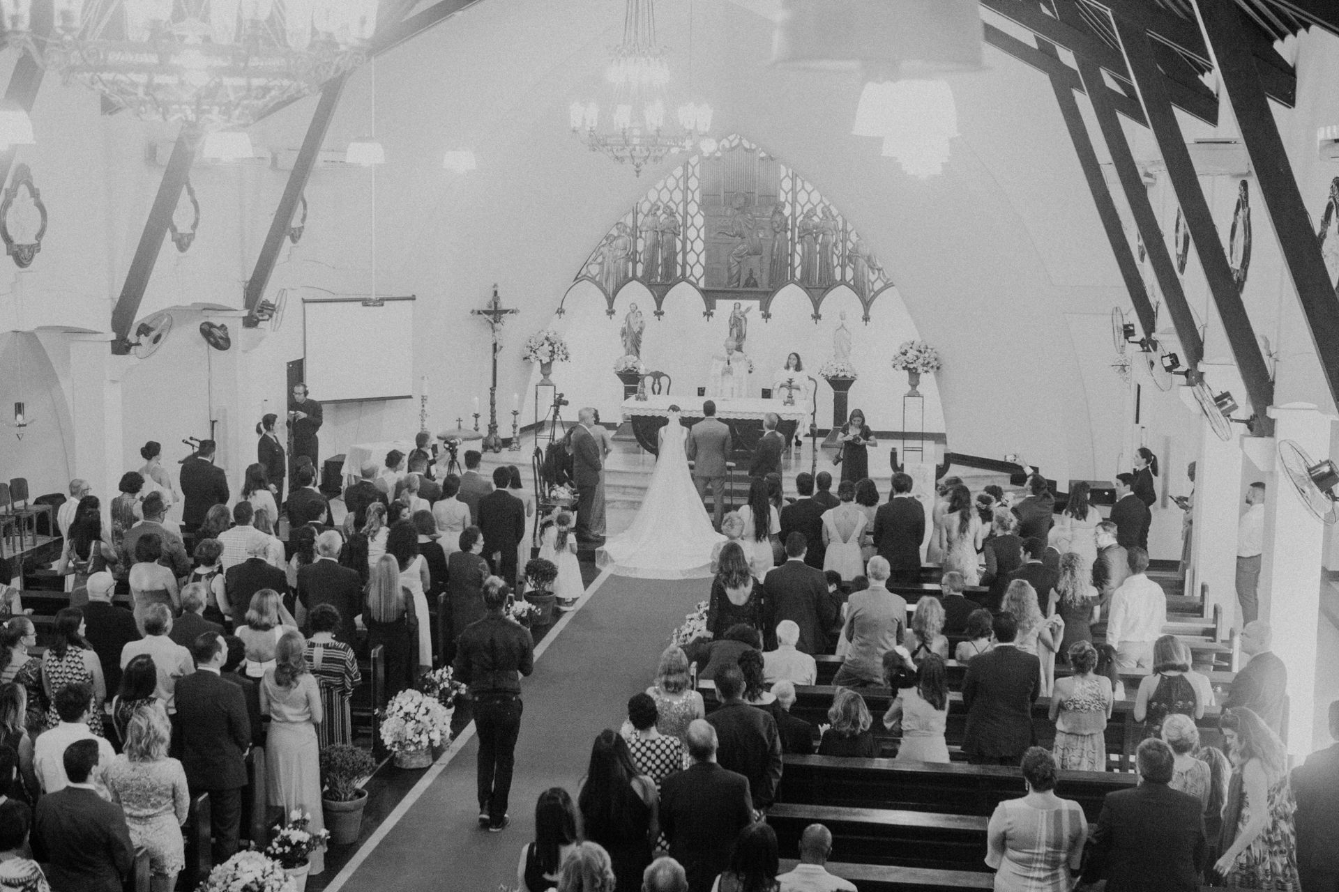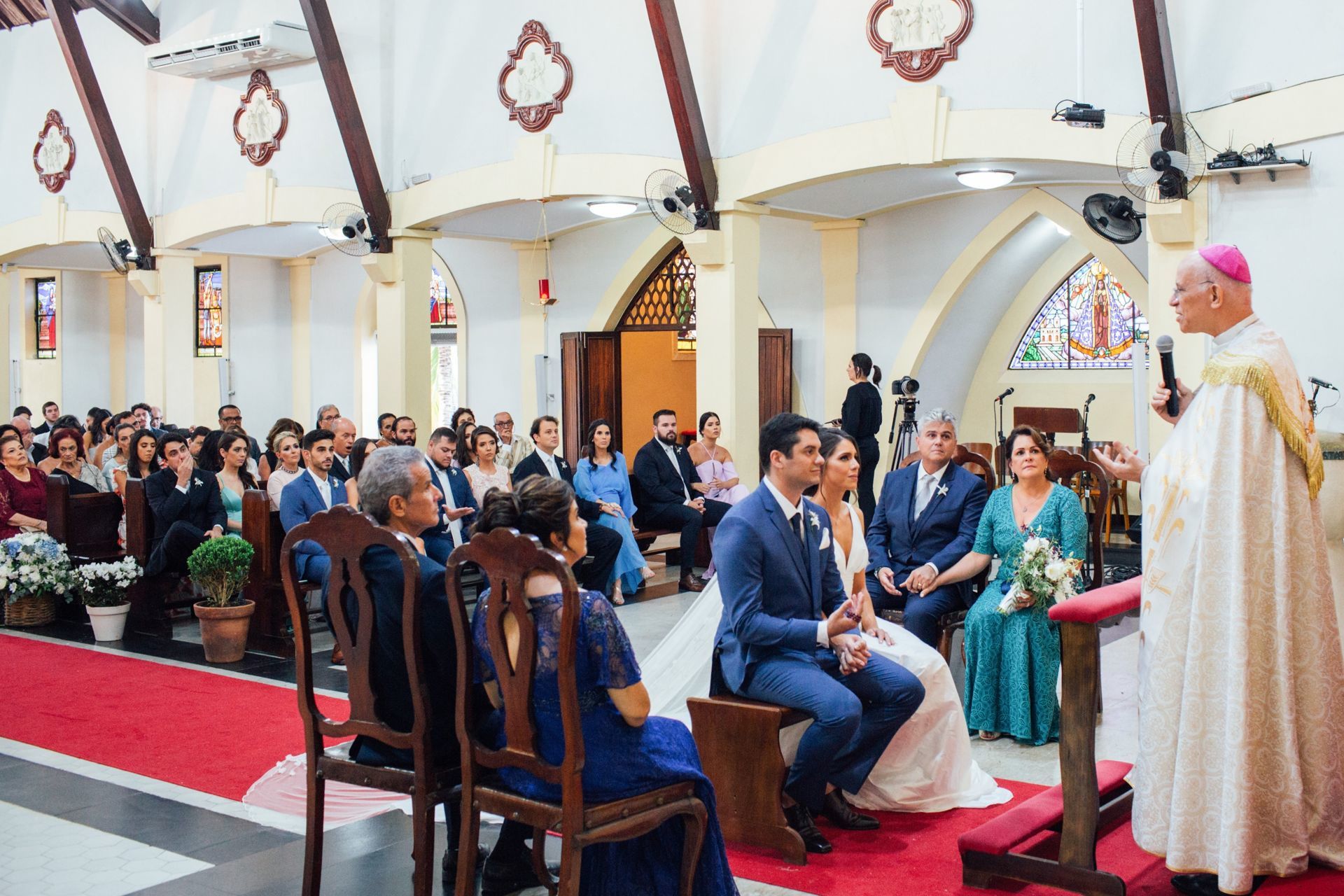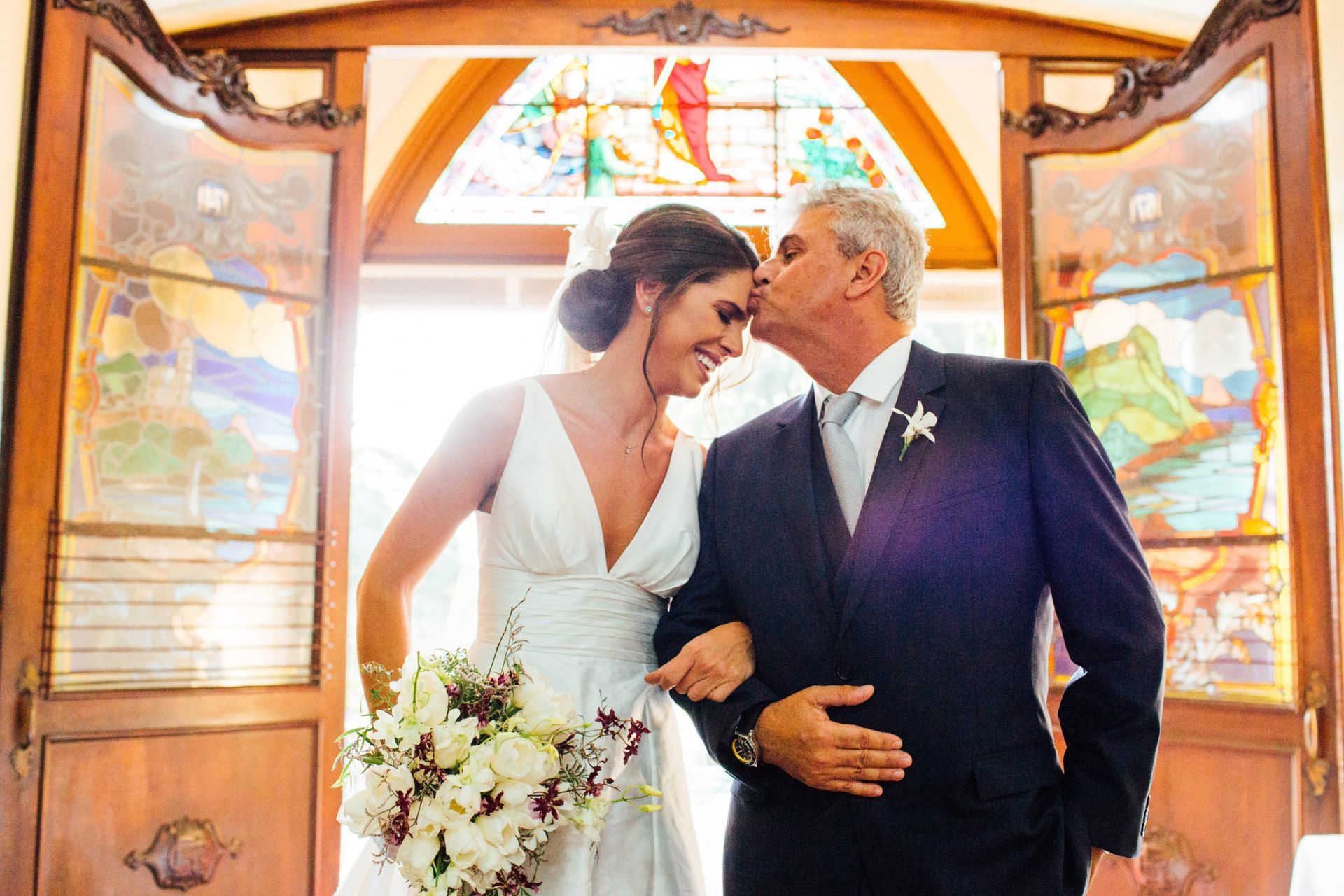 Ela escolheu casar na Igreja que a Mae e a avo dela se casaram, usou uma mantilha da família dele de muitos anos, teve a celebração feita por um bispo e a festa foi super especial com uma decoração inacreditável de linda e uma pista animada desde o inicio ate o fim!