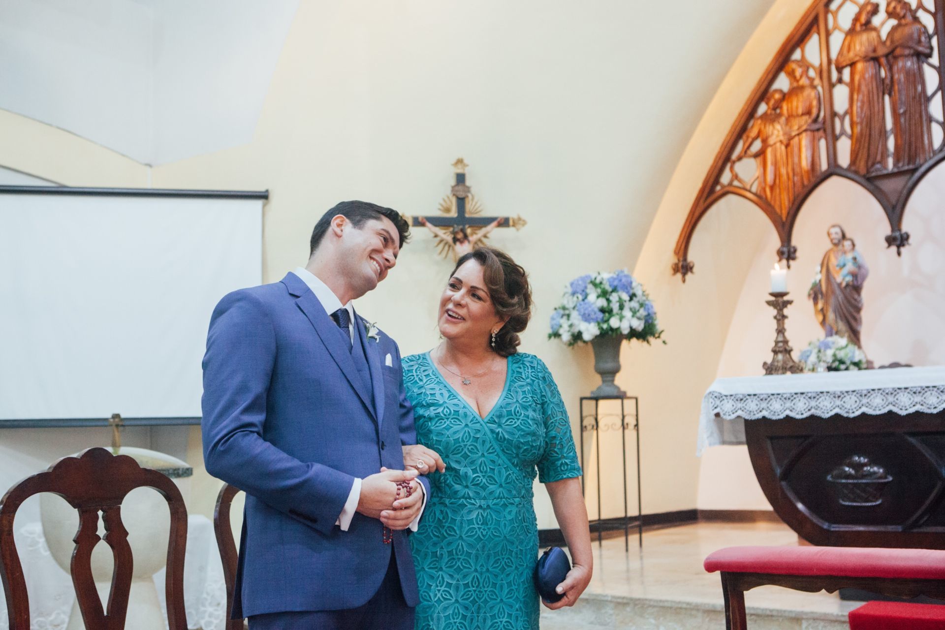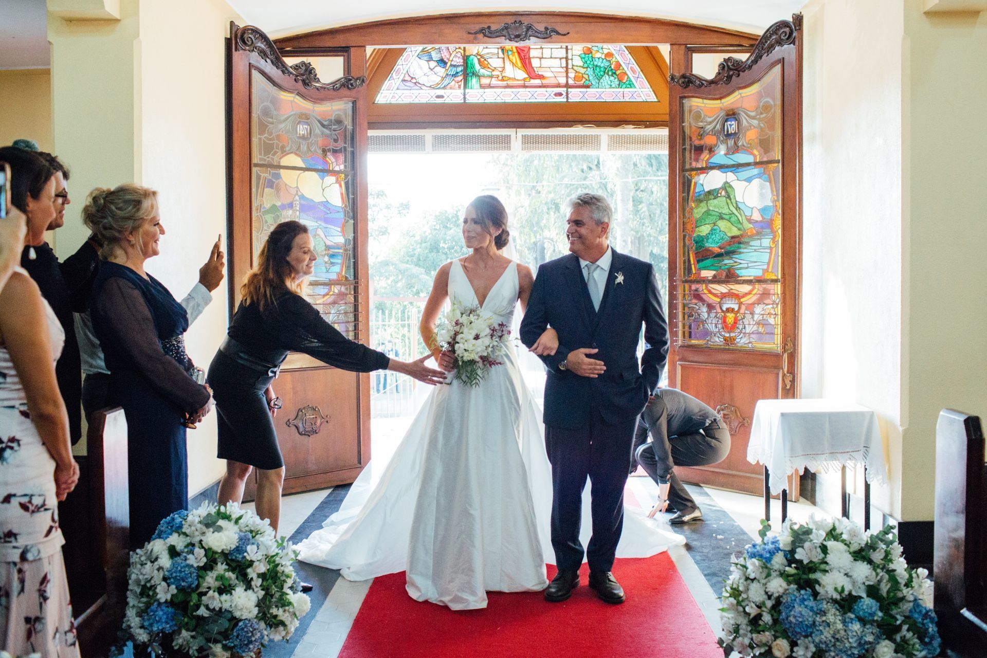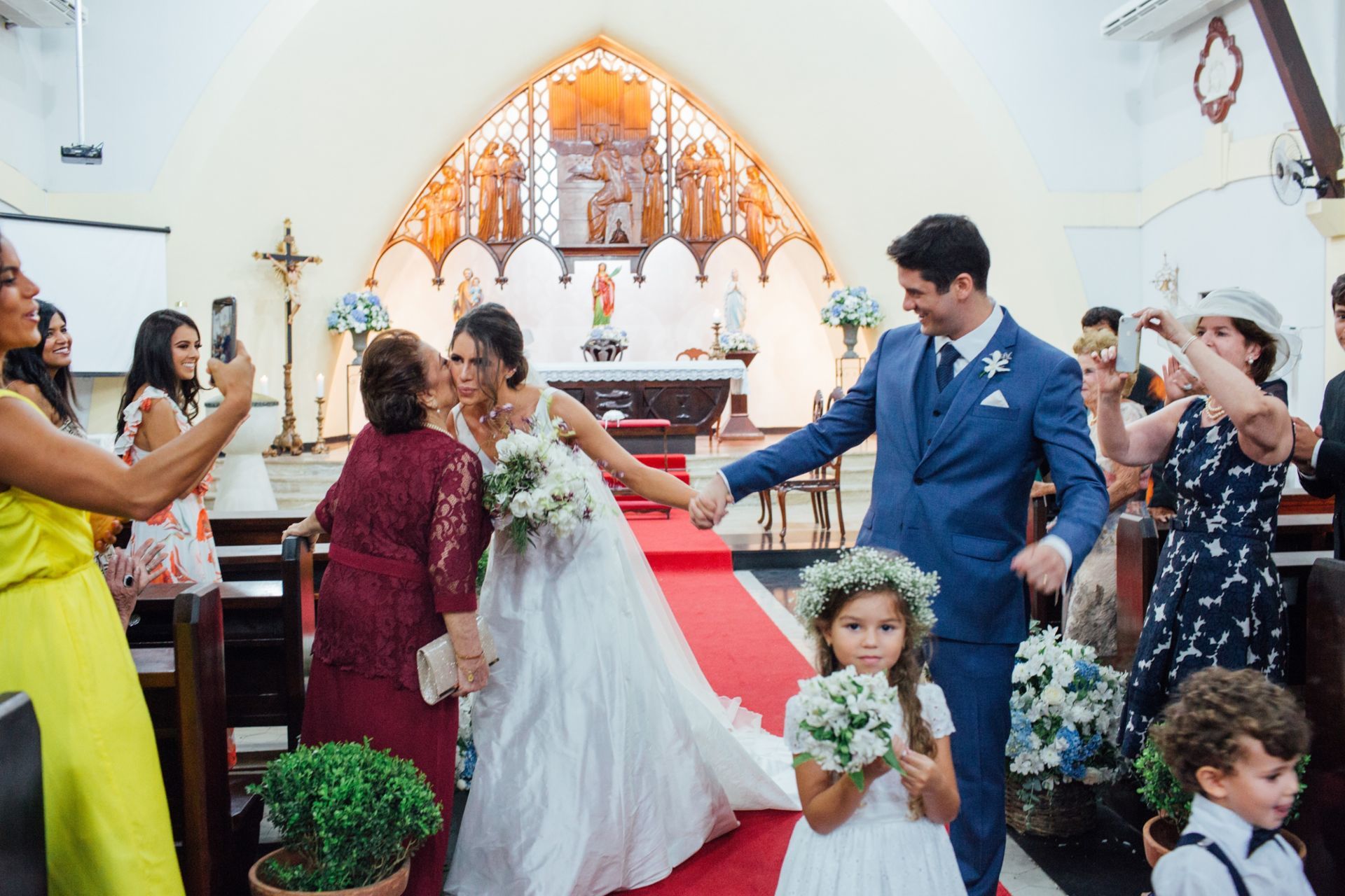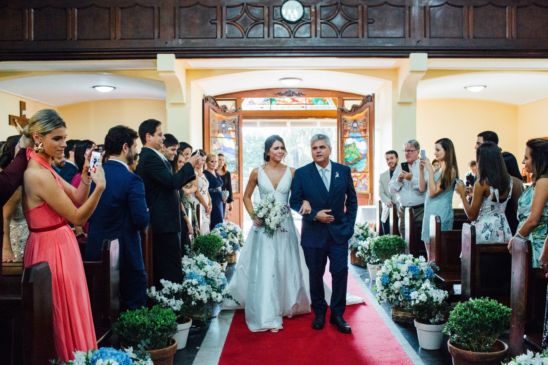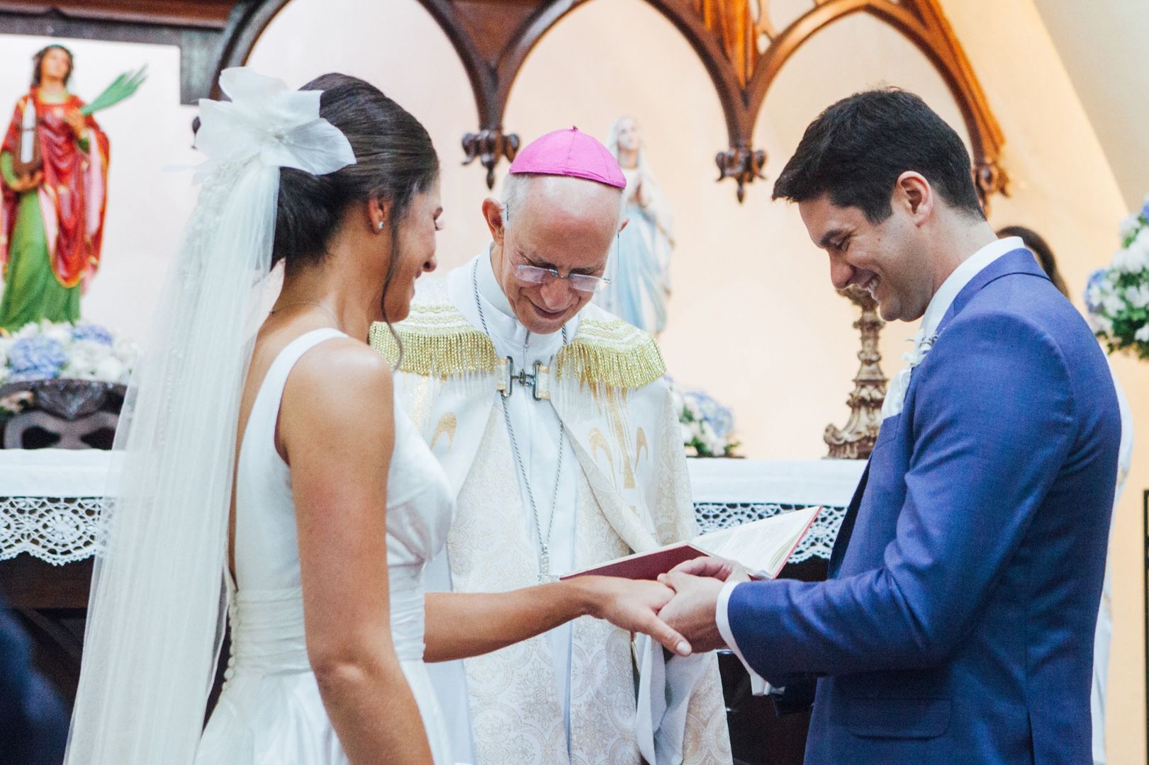 Ela escolheu casar na Igreja que a Mae e a avo dela se casaram, usou uma mantilha da família dele de muitos anos, teve a celebração feita por um bispo e a festa foi super especial com uma decoração inacreditável de linda e uma pista animada desde o inicio ate o fim!