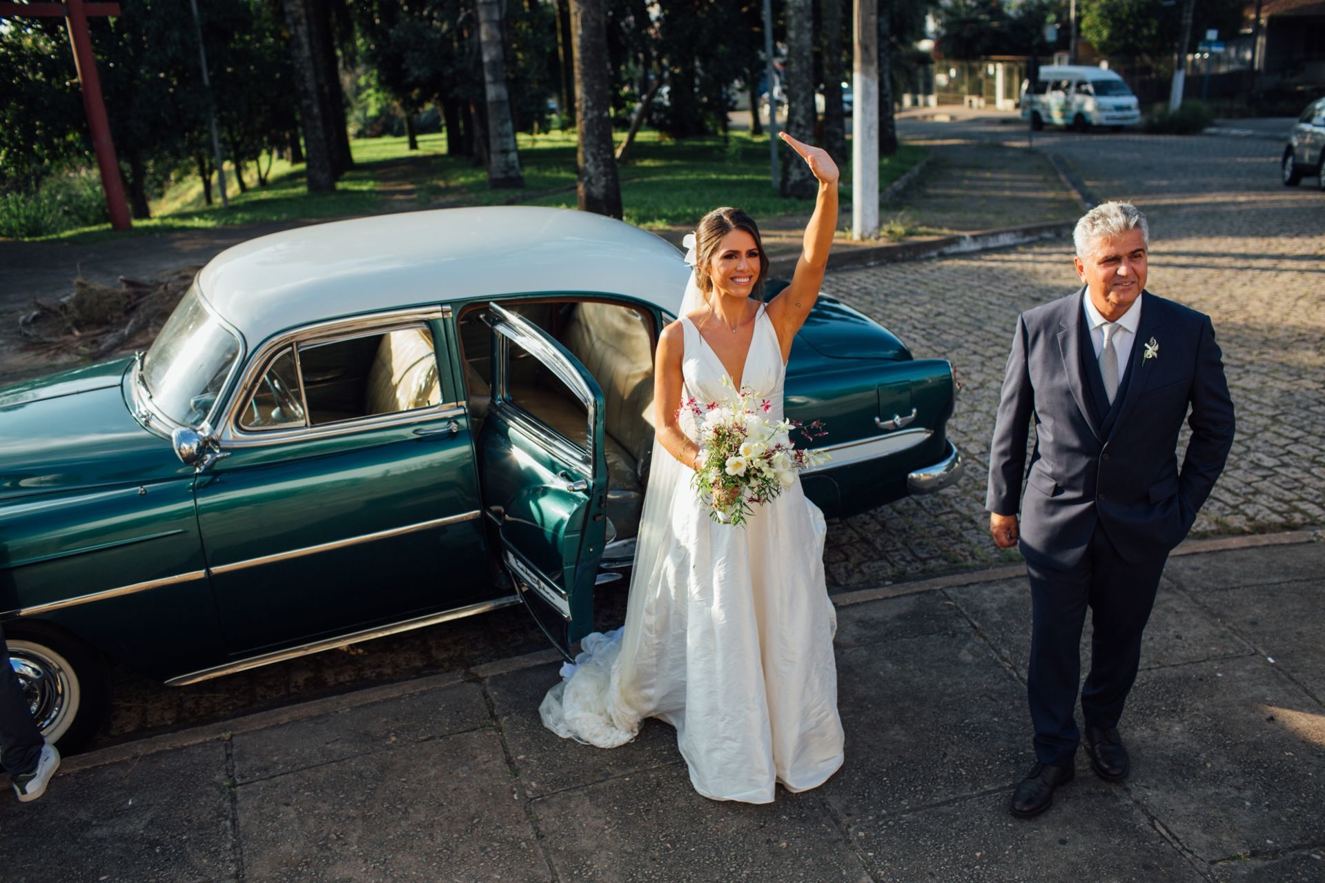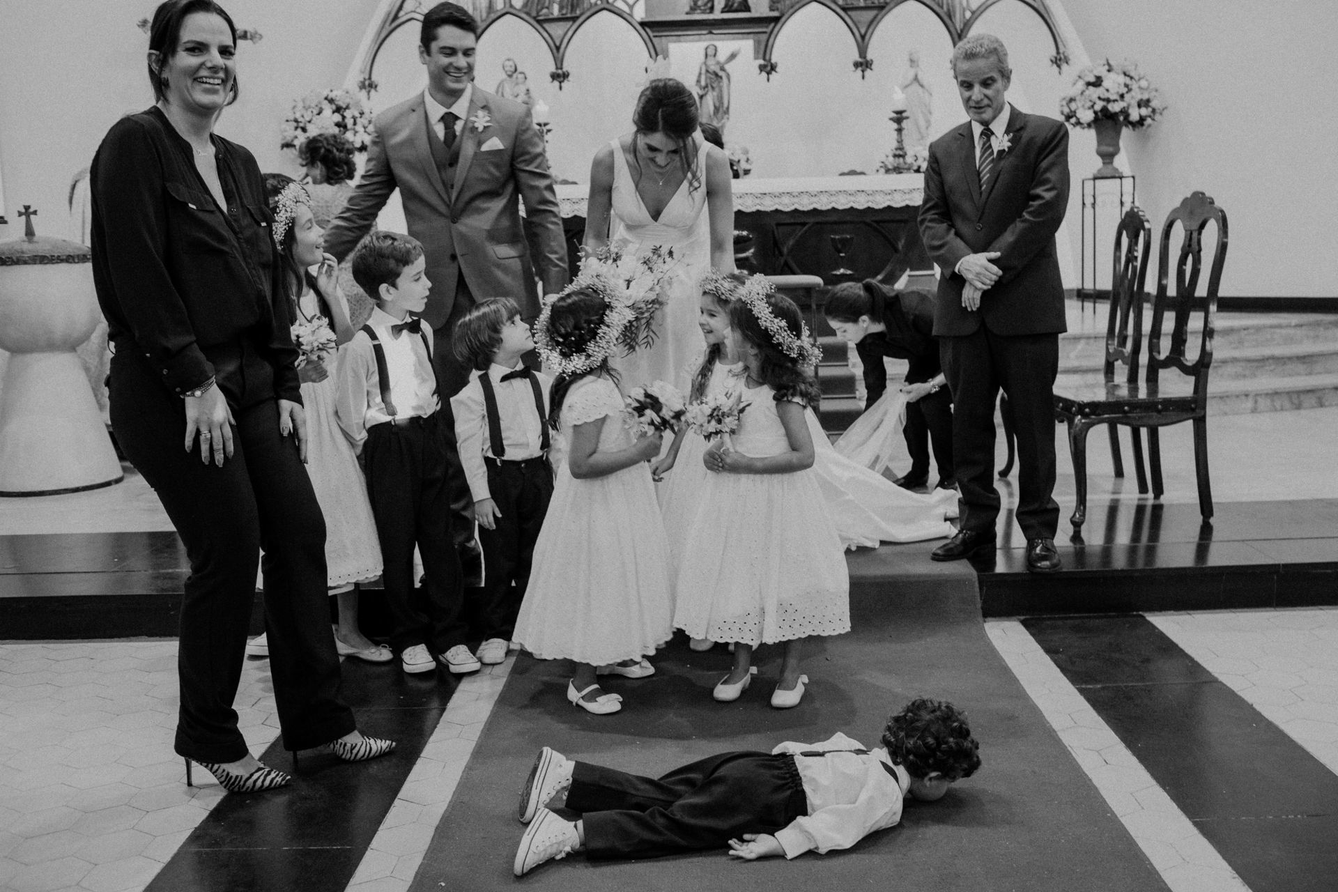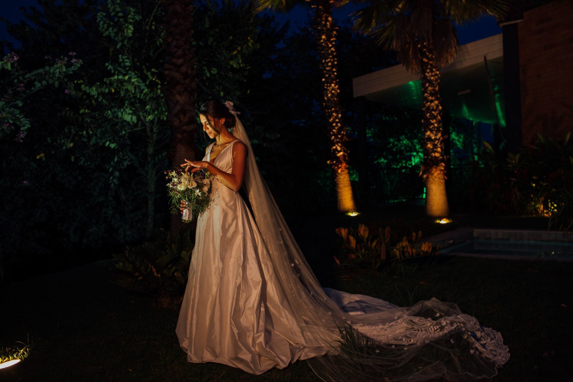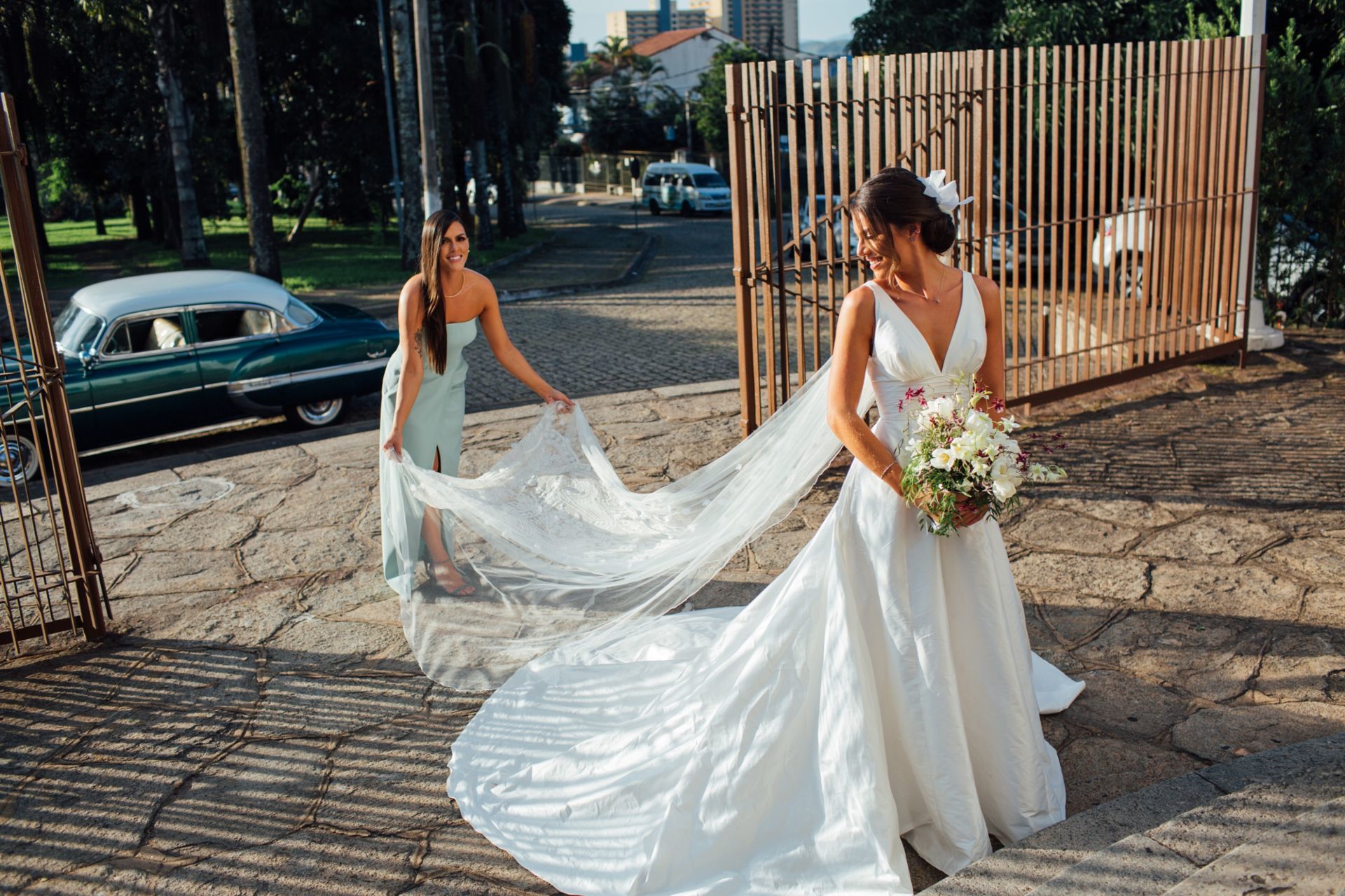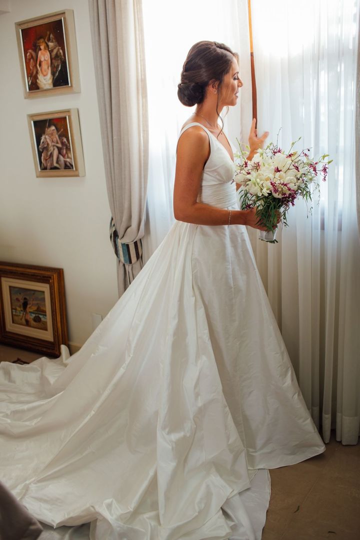 Ela escolheu casar na Igreja que a Mae e a avo dela se casaram, usou uma mantilha da família dele de muitos anos, teve a celebração feita por um bispo e a festa foi super especial com uma decoração inacreditável de linda e uma pista animada desde o inicio ate o fim!
